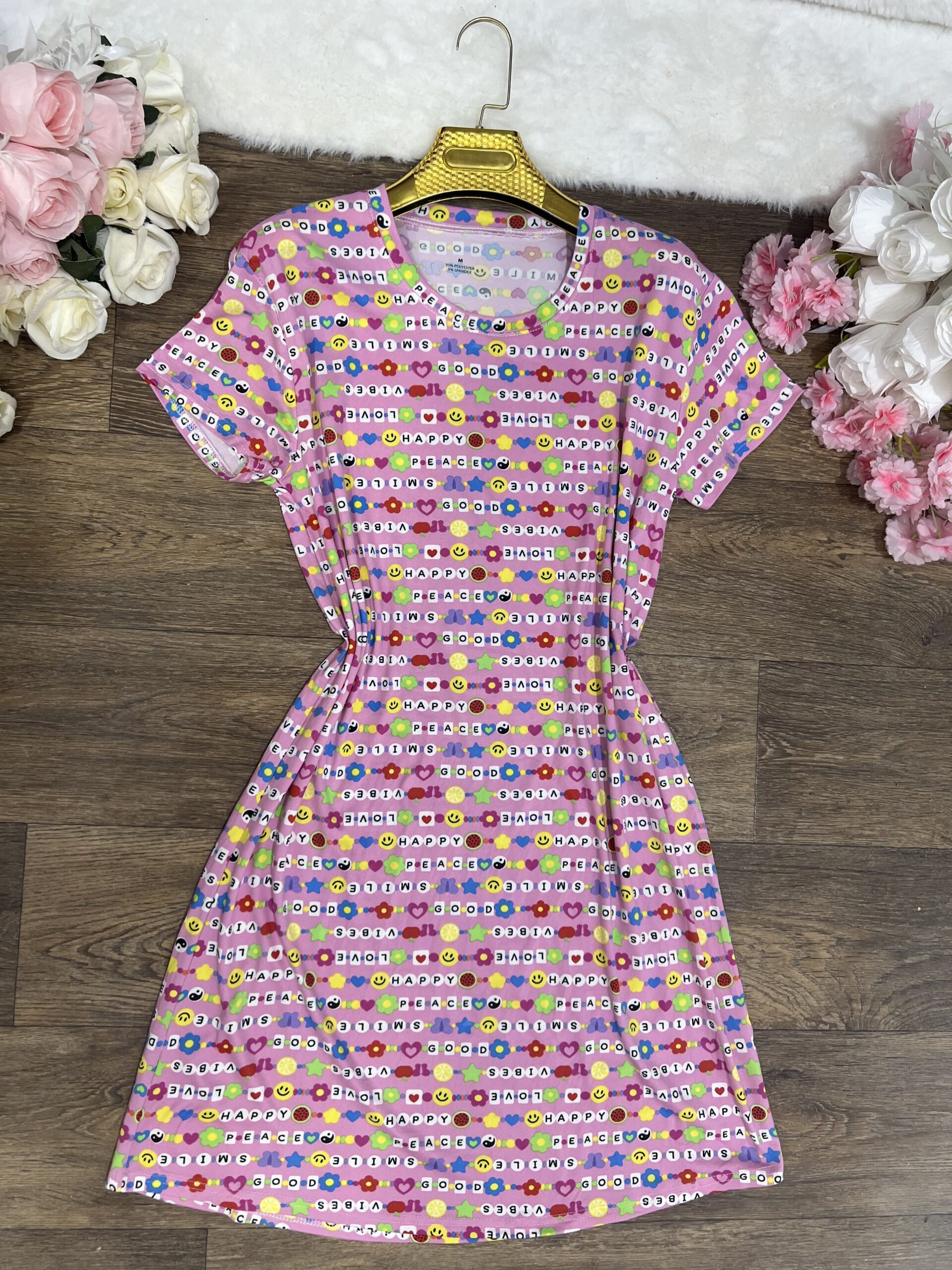 jaune fleurs rose